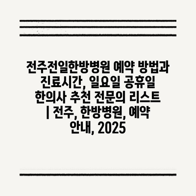 전주전일한방병원 예약 방법과 진료시간, 일요일 공휴일 한의사 추천 전연락 리스트 | 전주, 한방병원, 예약 공지, 2025 에 대해 자주 묻는 질문 TOP 5