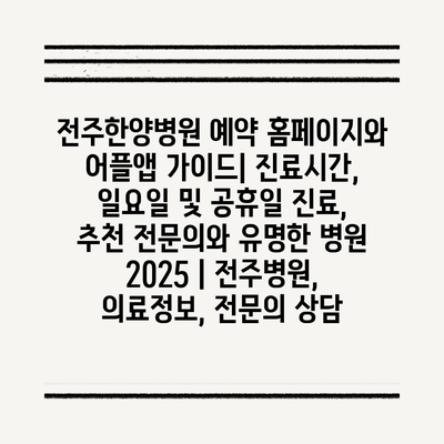 전주한양병원 예약 홈페이지와 어플앱 가이드| 진료시간, 일요일 및 공휴일 진료, 추천 전문의와 유명한 병원 2025 | 전주병원, 의료정보, 전문의 상담