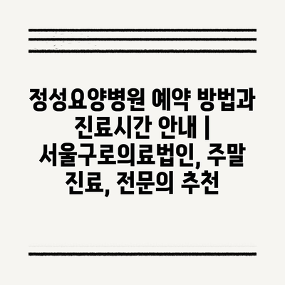정성요양병원 예약 방법과 진료시간 안내 | 서울구로의료법인, 주말 진료, 전문의 추천