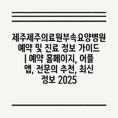 제주제주의료원부속요양병원 예약 및 진료 정보 설명서 | 예약 홈페이지, 어플 앱, 전연락 추천, 최신 정보 2025
