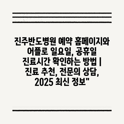 진주반도병원 예약 홈페이지와 어플로 일요일, 공휴일 진료시간 확인하는 방법 | 진료 추천, 전문의 상담, 2025 최신 정보”