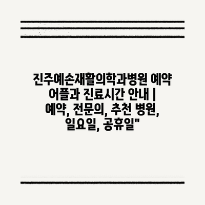 진주예손재활의학과병원 예약 어플과 진료시간 공지 | 예약, 전연락, 추천 병원, 일요일, 공휴일