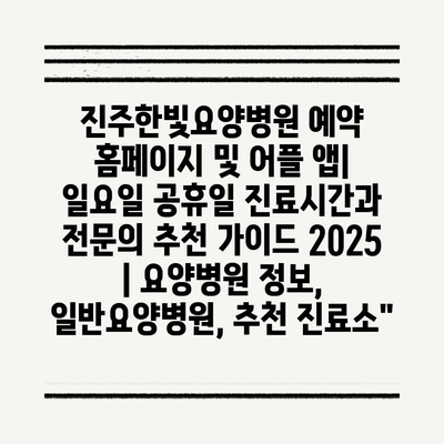 진주한빛요양병원 예약 홈페이지 및 어플 앱| 일요일 공휴일 진료시간과 전연락 추천 설명서 2025 | 요양병원 정보, 일반요양병원, 추천 진료소” 에 대해 자주 묻는 질문 TOP 5