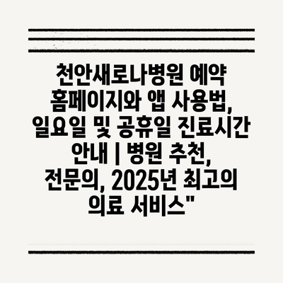 천안새로나병원 예약 홈페이지와 앱 사용법, 일요일 및 공휴일 진료시간 공지 | 병원 추천, 전연락, 2025년 최고의 의료 서비스