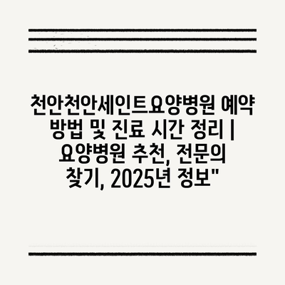천안천안세인트요양병원 예약 방법 및 진료 시간 정리 | 요양병원 추천, 전연락 찾기, 2025년 정보에 대해 자주 묻는 질문 TOP 5