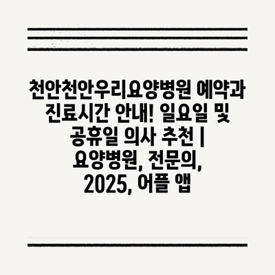 천안천안우리요양병원 예약과 진료시간 공지! 일요일 및 공휴일 의사 추천 | 요양병원, 전연락, 2025, 어플 앱에 대해 자주 묻는 질문 TOP 5