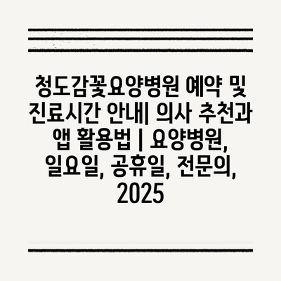 청도감꽃요양병원 예약 및 진료시간 공지| 의사 추천과 앱 활용법 | 요양병원, 일요일, 공휴일, 전연락, 2025 에 대해 자주 묻는 질문 TOP 5