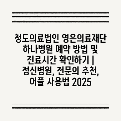청도의료법인 영은의료재단 하나병원 예약 방법 및 진료시간 확인하기 | 정신병원, 전연락 추천, 어플 사용법 2025 에 대해 자주 묻는 질문 TOP 5