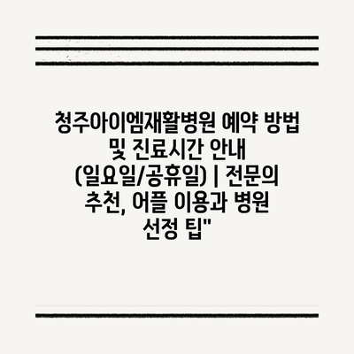 청주아이엠재활병원 예약 방법 및 진료시간 공지 (일요일/공휴일) | 전연락 추천, 어플 이용과 병원 선정 팁” 에 대해 자주 묻는 질문 TOP 5