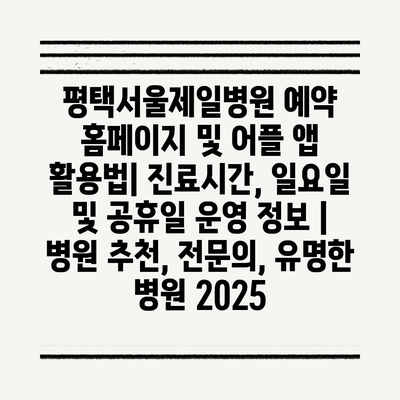 평택서울제일병원 예약 홈페이지 및 어플 앱 활용법| 진료시간, 일요일 및 공휴일 운영 정보 | 병원 추천, 전연락, 유명한 병원 2025 에 대해 자주 묻는 질문 TOP 5