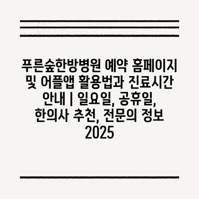 ✅ 푸른숲한방병원의 진료시간과 예약 방법을 자세히 알아보세요.
