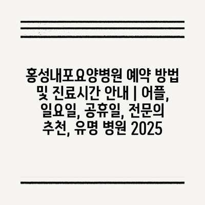 ✅ 홍성내포요양병원의 예약 방법과 진료시간을 지금 바로 알아보세요!