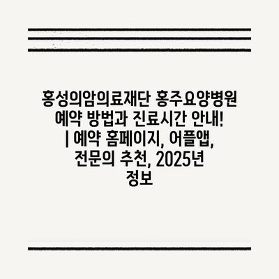 ✅ 홍주요양병원의 예약 방법을 자세히 알아보세요!