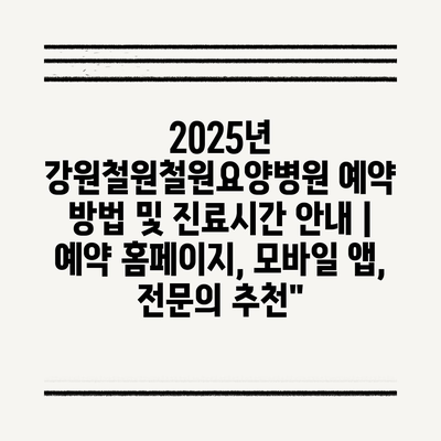 2025년 강원철원철원요양병원 예약 방법 및 진료시간 안내 | 예약 홈페이지, 모바일 앱, 전문의 추천”