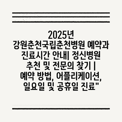 2025년 강원춘천국립춘천병원 예약과 진료시간 안내| 정신병원 추천 및 전문의 찾기 | 예약 방법, 어플리케이션, 일요일 및 공휴일 진료”